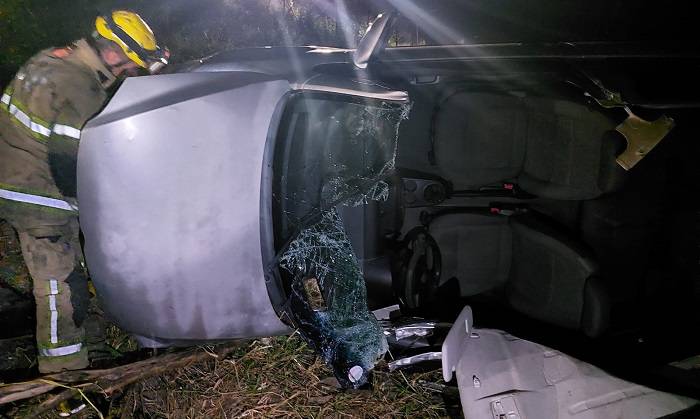 Carro é “jogado” para fora da Dique 2 em Pouso Alegre
