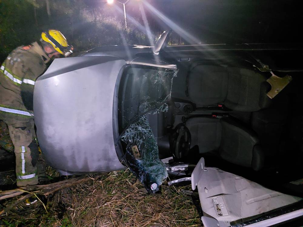 Carro é “jogado” para fora da Dique 2 em Pouso Alegre