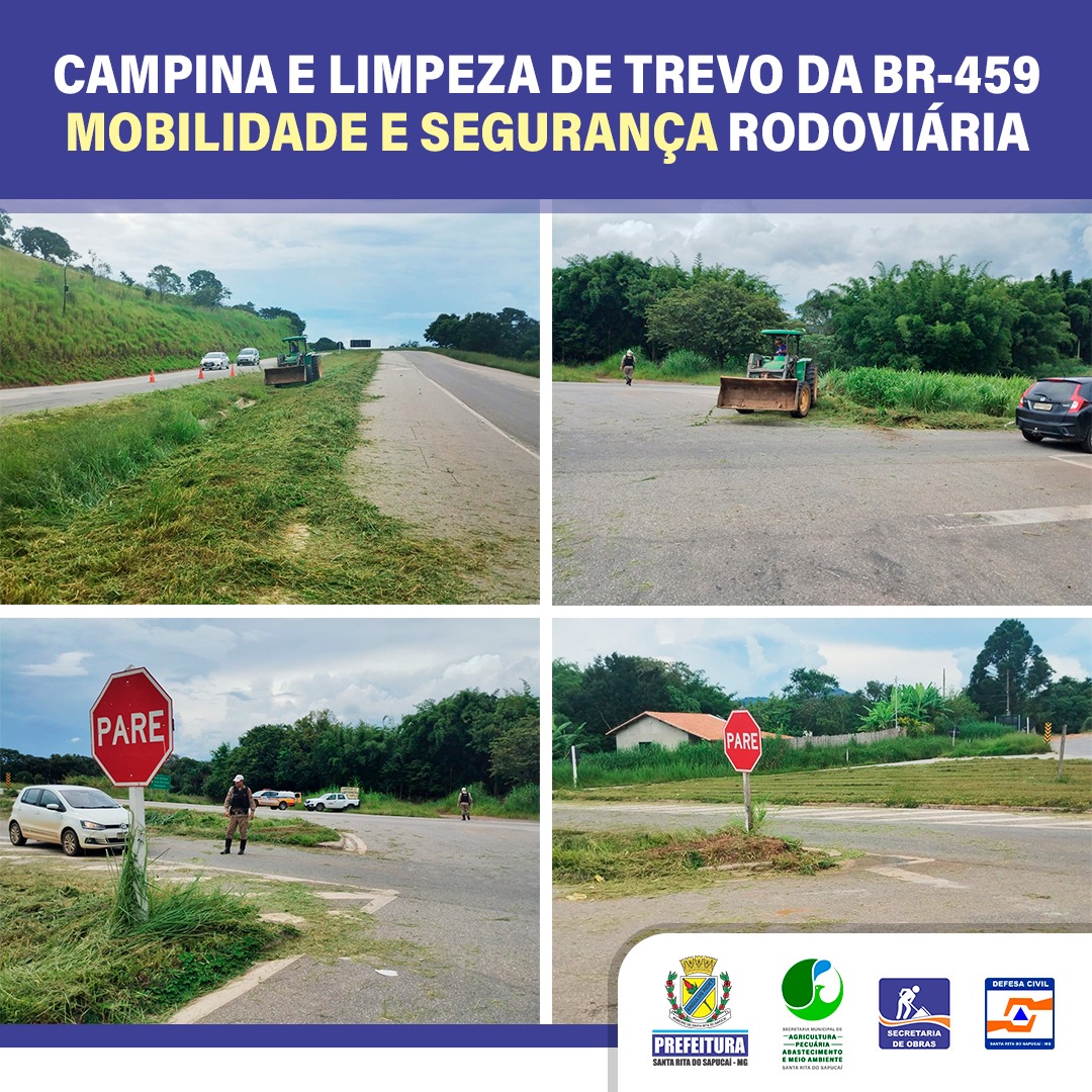 Visando uma maior segurança dos motoristas, a Prefeitura Municipal de Santa Rita do Sapucaí, através da Defesa Civil Municipal e Secretaria Municipal de Obras, realizou a campina e limpeza do trevo da BR 459 / MG 173 trevo de entroncamento que dá acesso a Cachoeira de Minas, Conceição dos Ouros Paraisópolis e ao Vale do Paraíba.