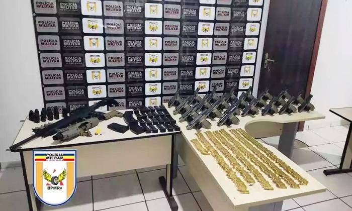 Segundo o capitão Thiago Salgado, comandante da 17ª Cia da PMRv, os suspeitos apresentaram versões divergentes durante a abordagem. Na busca veicular, foi encontrada uma arma dentro de uma mochila no porta-malas. “Aí neste momento a gente começa a questionar e fazer o pente fino. Os militares acharam munições de calibre 556, de fuzis, na lateral do painel próximo ao airbag. Os militares já cientes que tinha mais coisa envolvida, começaram a conversar, interrogar. O motorista confessou que teriam mais algumas armas no tanque de combustível, aí os policiais fizeram a abertura do local debaixo do banco de trás. Foram encontradas um total de 23 pistolas da marca Canik no calibre 9mm, além de uma escopeta calibre 12 semiautomática. Todas as armas estão com numeração raspada, Foram apreendidos também carregadores e acessórios pra ajudar a municiar as armas”, detalhou.