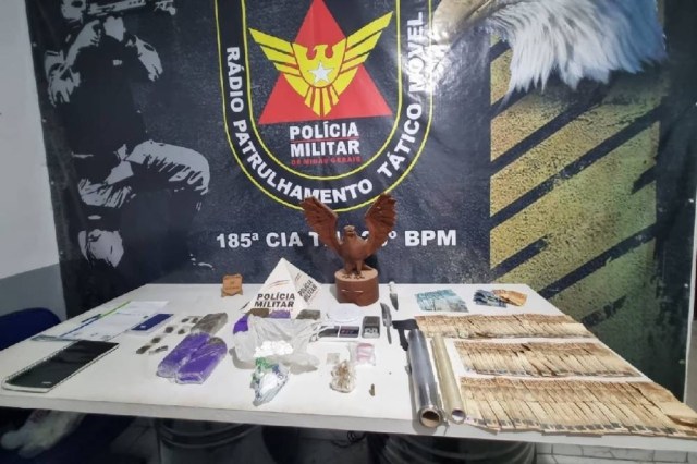 Abordado, o homem de 24 anos foi submetido à busca pessoal e também foram realizadas diligências adicionais pela equipe policial na área central. A operação teve êxito com a localização de grande volume de droga e material utilizado no tráfico, além de dinheiro: 06 barras de maconha; 02 porções de pasta base de cocaína; 03 porções grandes de crack; R$ 4 mil em espécie; 01 munição de 9mm; 02 balanças de precisão e 01 bloco de anotações de tráfico de drogas.