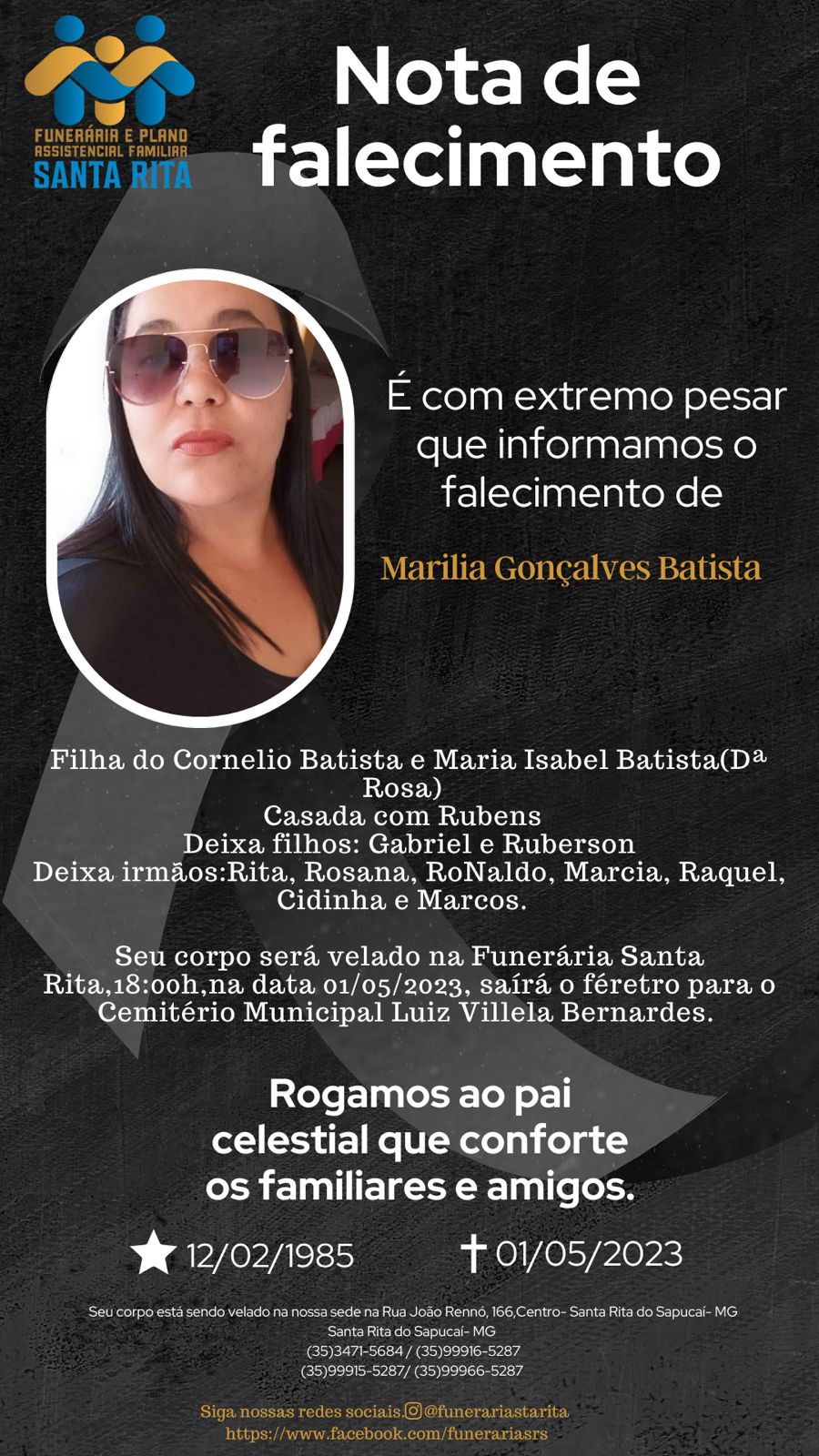 A imagem da nota é fornecida pela Funerária Santa Rita.