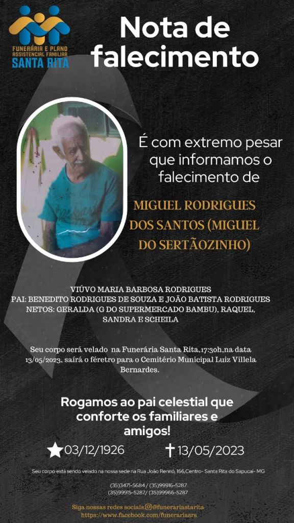NOTA DE FALECIMENTO – Miguel Rodrigues dos Santos