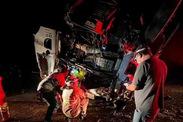 Caminhão despenca de ribanceira na BR-459 sobre a estrada de Senador José Bento