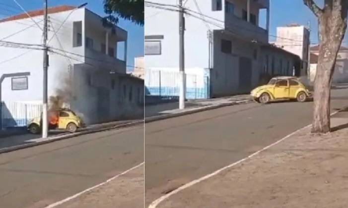 Tiago Henrique de Souza Gonçalves, de 29 anos, teve 90% do corpo queimado e morreu na madrugada deste domingo(18). Moradores gravaram o veículo em chamas e as imagens foram cedidas pelo Jornal Meio Dia.