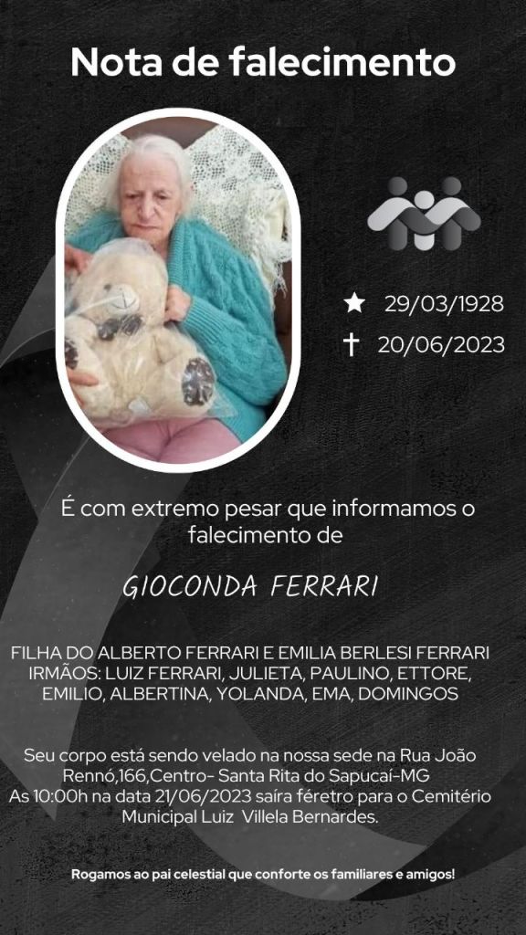 A imagem da nota é fornecida pela Funerária Santa Rita