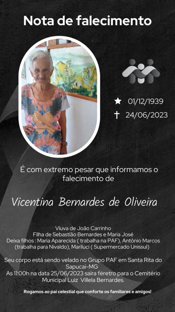 A imagem da nota é fornecida pela Funerária Santa Rita.