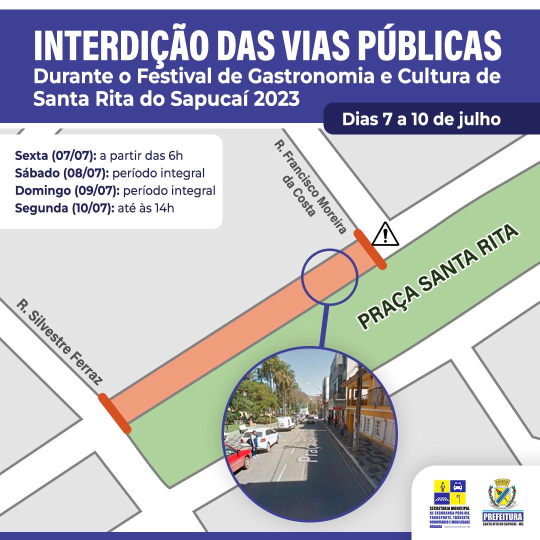 O Festival Sabores do Vale, que acontecerá do dia 7 ao dia 9 de julho na Praça Santa Rita, solicita a interdição do trânsito para a montagem do evento.