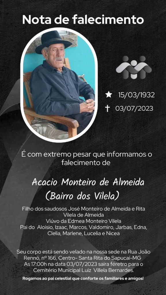 NOTA DE FALECIMENTO – Acácio Monteiro de Almeida