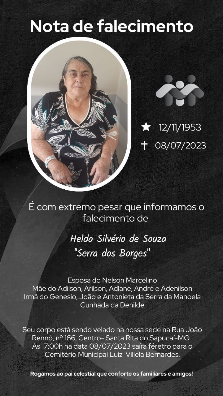 NOTA DE FALECIMENTO – Helda Silvério de Souza