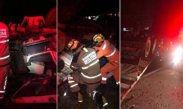 Segundo informações do Corpo de Bombeiros, o motorista conduzia o caminhão que seguia de Mogi Guaçu (SP) para Belo Horizonte (MG), quando perdeu controle da direção e capotou em uma curva.