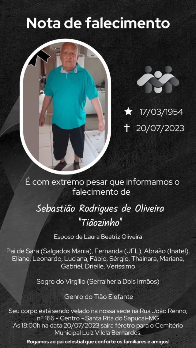 A imagem da nota é fornecida pela Funerária Santa Rita.