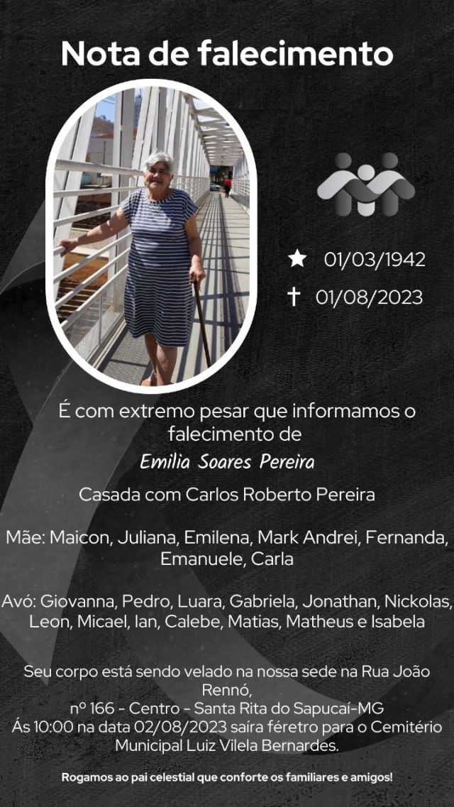 A imagem da nota é fornecida pela Funerária Santa Rita.