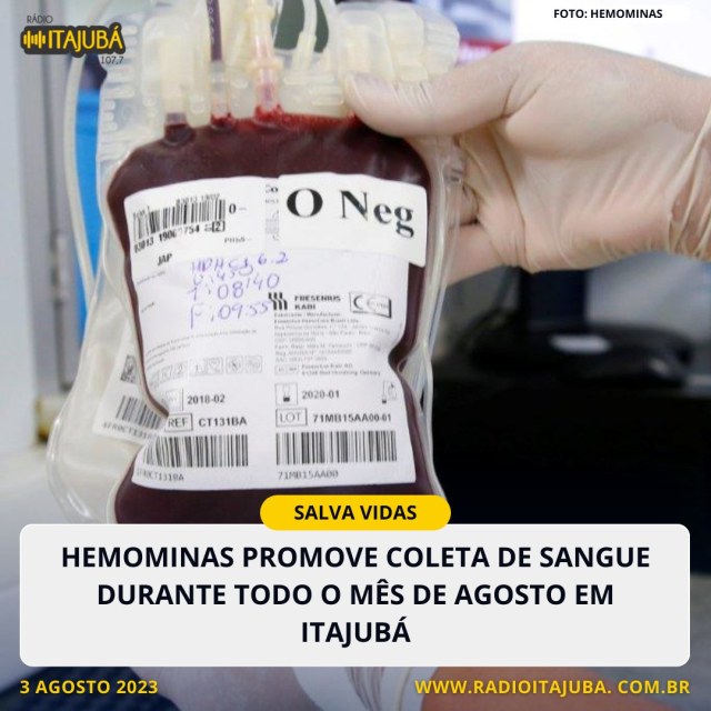 A Fundação Hemominas está fazendo uma campanha de coleta de sangue durante todo o mês de agosto em Itajubá. Todo mês a fundação divulga datas programadas para coleta de sangue no interior de Minas.