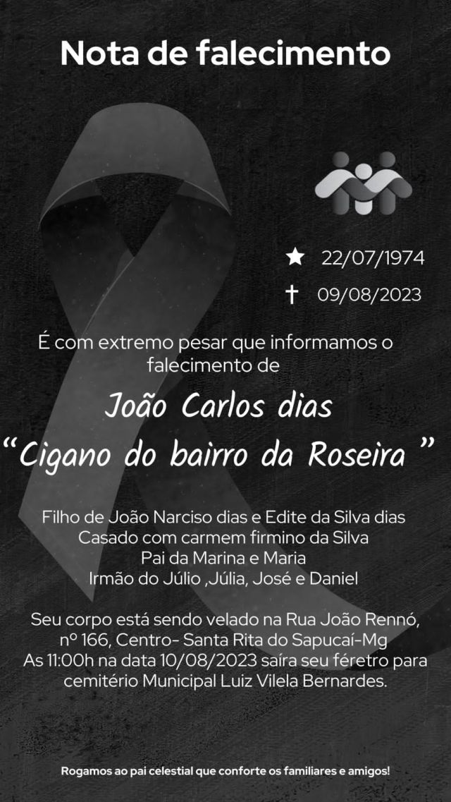 A imagem da nota é fornecida pela Funerária Santa Rita.