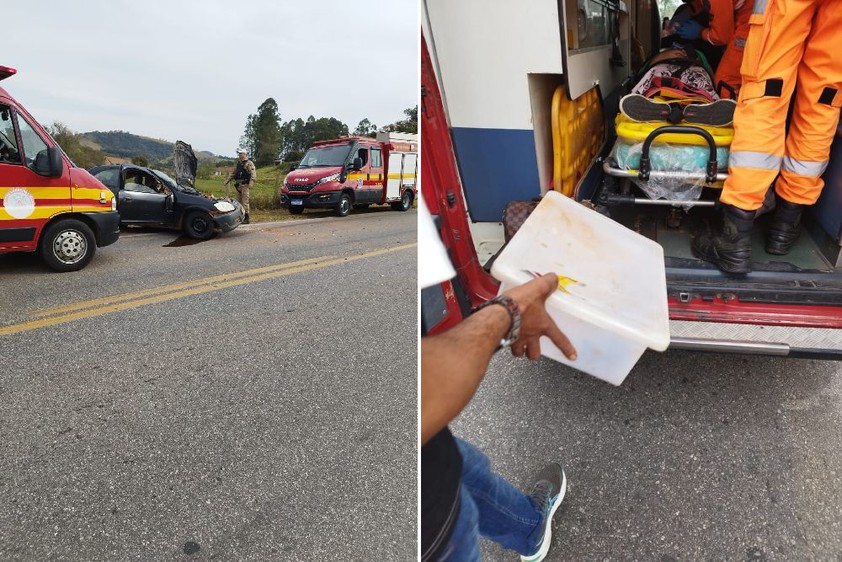 O motorista da carreta, único ocupante do veículo de carga, não teve ferimentos. No automóvel, foram socorridos ao Hospital Samuel Libânio, em Pouso Alegre, uma mulher de 27 anos com um corte contuso na cabeça, um homem de 38 anos com escoriações na face e um idoso de 62, condutor do automóvel, com fratura no braço esquerdo. Todos os feridos estavam conscientes e orientados, segundo o CBMMG.