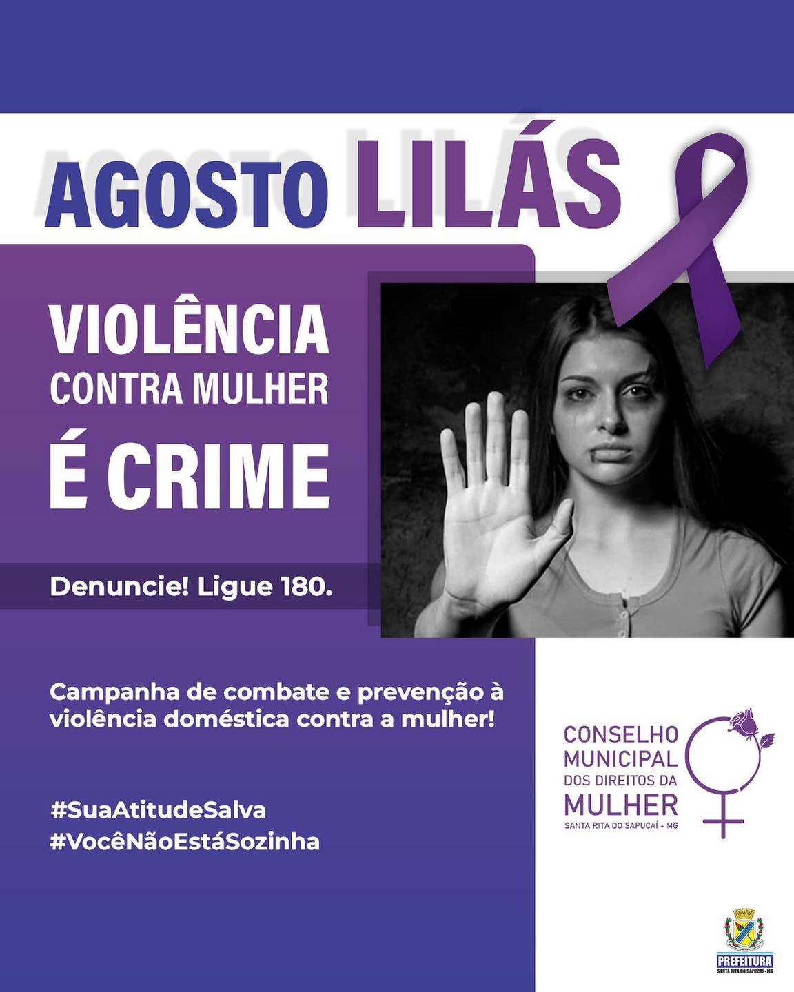 Agosto Lilás é uma campanha sobre a conscientização e combate à violência contra a mulher, e o Conselho Municipal dos Direitos da Mulher de Santa Rita do Sapucaí reúne as vozes femininas, representantes do poder público e sociedade civil, para elaborar e propor ações que realmente atendam aos anseios das mulheres, especialmente aquelas em situação de vulnerabilidade social, que sofrem violências diárias e não conseguem ter voz.