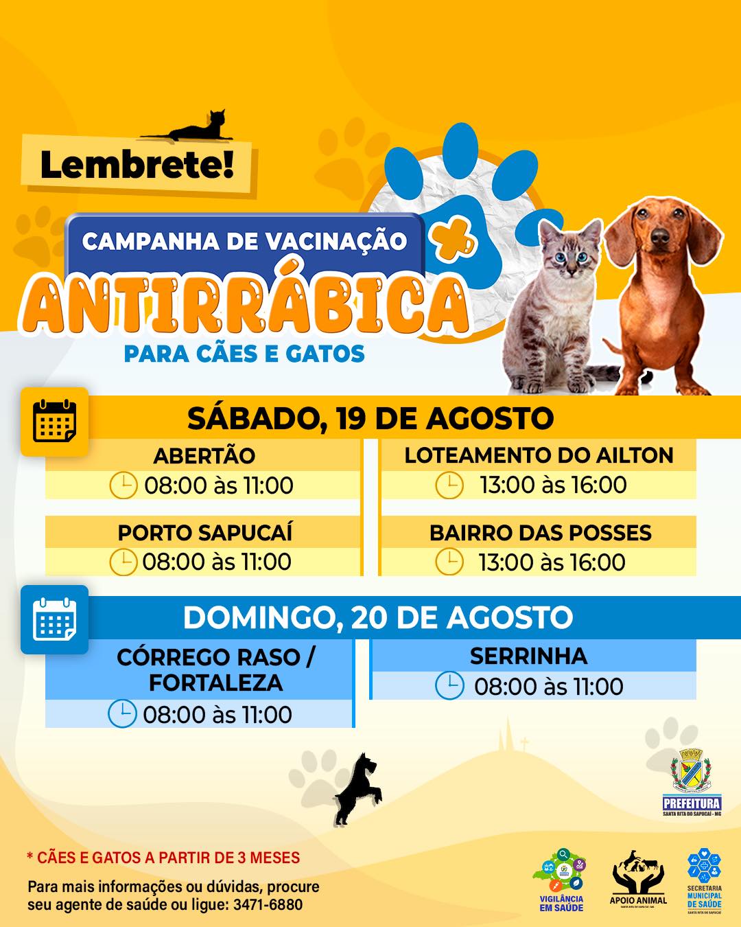 Campanha de Vacinação Antirrábica 2023 inicia nesta final de semana em Santa Rita do Sapucaí