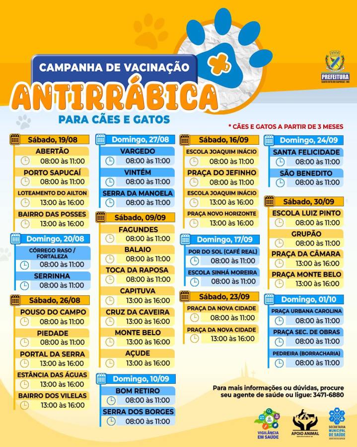 Campanha de Vacinação Antirrábica 2023 inicia nesta final de semana em Santa Rita do Sapucaí