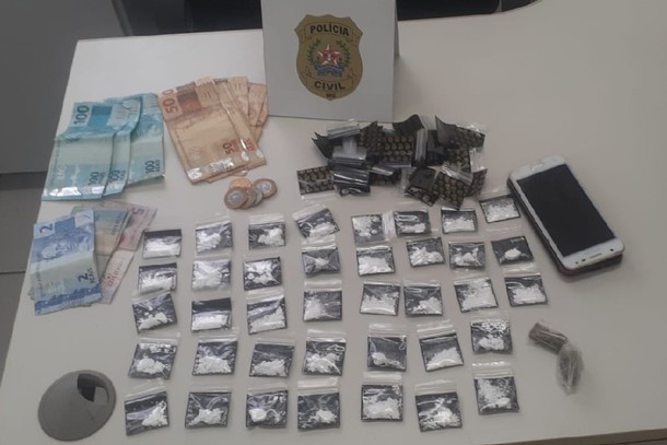 Um suspeito de 23 anos, envolvido com o tráfico de drogas, foi preso quando a Polícia Civil cumpriu um mandado de buscas em sua casa, localizada no bairro Cidade Jardim, em Pouso Alegre. Ele estava sendo monitorado há vários dias, desde quando foi vítima de um atentado em disputa por pontos de tráfico.