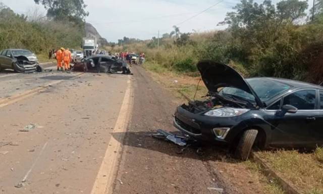 Em Campestre, neste domingo(20), um motorista perdeu o controle de seu veículo, invadiu a contramão e colidiu com dois outros carros na MGC-267.