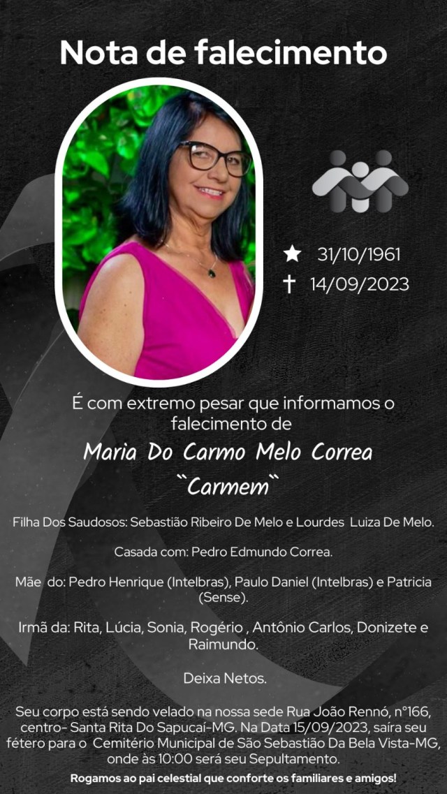 A imagem da nota é fornecida pela Funerária Santa Rita.