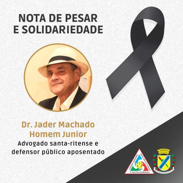 A Câmara Municipal de Santa Rita do Sapucaí lamenta profundamente o falecimento do advogado e defensor público aposentado Dr. Jader Machado Homem Junior, ocorrido nesta quinta-feira(14).