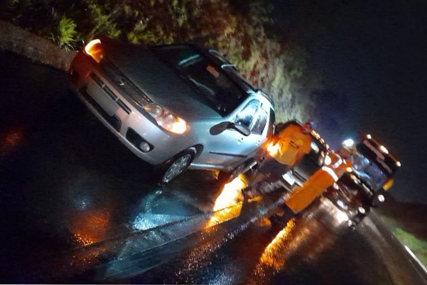 Ônibus de turismo provoca engavetamento na Br-459 e duas jovens ficam feridas