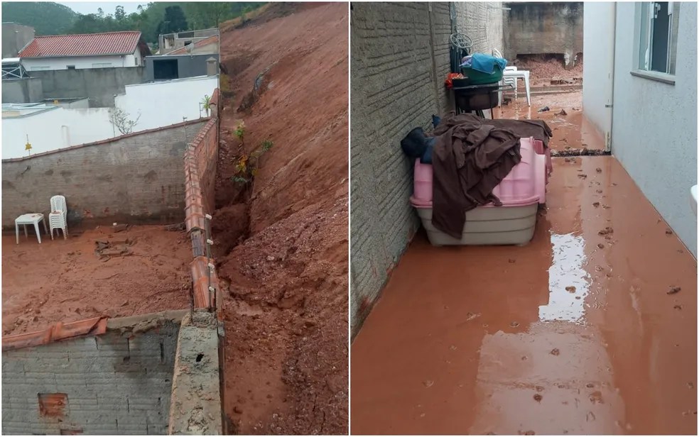 Um deslizamento de terra derrubou parte do muro dos fundos de uma residência na manhã deste domingo (1º) no bairro Jardim Tiradentes, em Poços de Caldas.