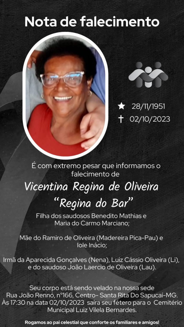 A imagem da nota é fornecida pela Funerária Santa Rita.