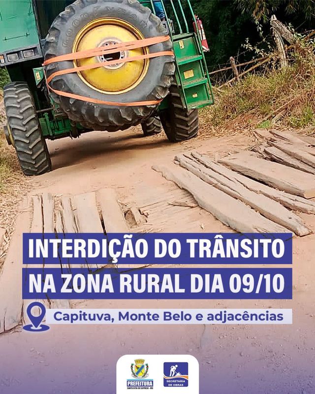 A passagem será interrompida das 8h às 12h, podendo ser liberada antes ou depois.