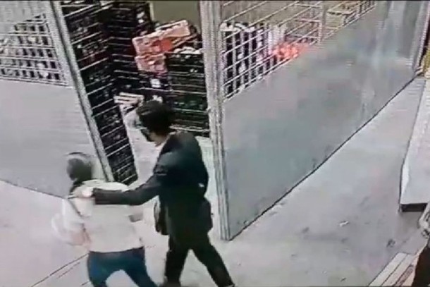 Imagens do assalto ocorrido na manhã desta sexta-feira(06) contra o Hipermercado ABC em Pouso Alegre, vazaram em redes sociais. Provavelmente originadas do circuito de câmeras de segurança do estabelecimento, as imagens mostram um dos assaltantes subindo uma escada acompanhado de uma mulher que seria a funcionária da tesouraria.