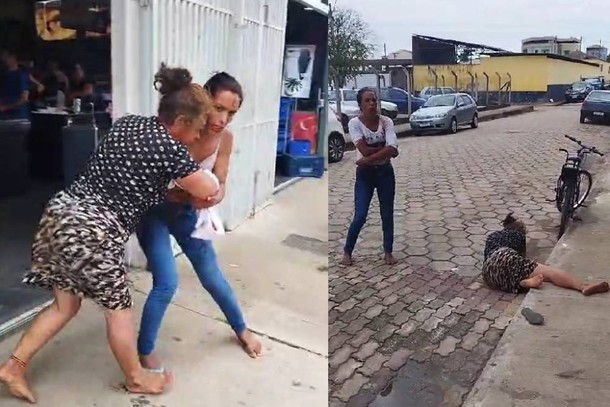 Com sangramento nos braços, a mulher morena, mais jovem, proferiu xingamentos na porta do estabelecimento e ameaçou entrar no recinto, sendo contida por funcionários. Em certo momento, ela tirou a blusa e permaneceu somente de sutiã. A outra que a acompanhava, uma mulher de mais idade e também com sintomas de embriaguez, chegou a cair ao chão e arrastou a companheira na queda.
