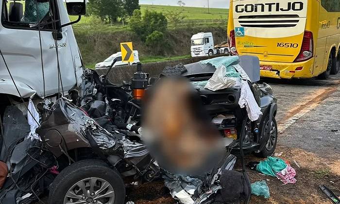 Uma pessoa morreu e outras quatro ficaram feridas em consequência de um engavetamento envolvendo um caminhão, dois veículos de passeio e um ônibus. A batida ocorreu por volta de 5h desta quinta-feira (12/10), no quilômetro 873, da BR-381, entre Pouso Alegre e Estiva, no Sul de Minas.
