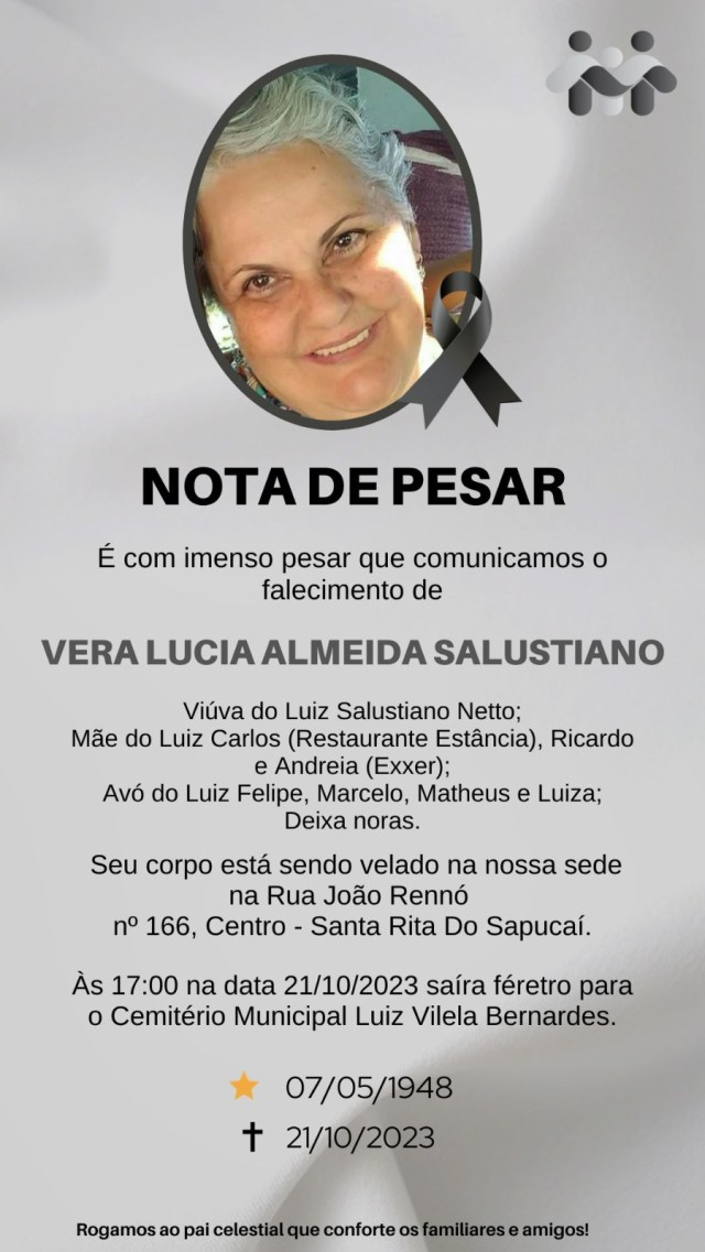 NOTA DE FALECIMENTO – Vera Lúcia Almeida Salustiano