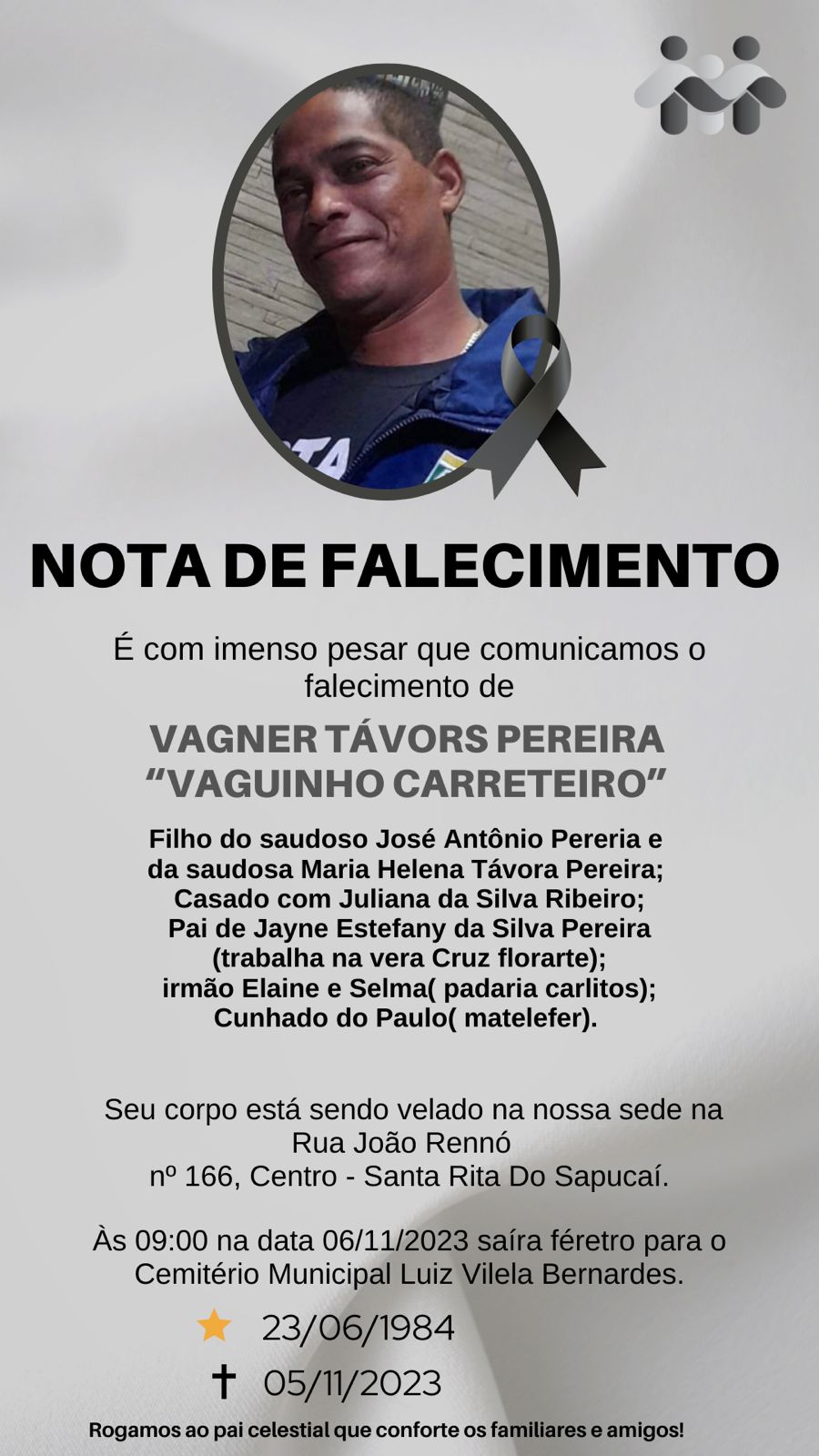 NOTA DE FALECIMENTO – Vágner Távors Pereira