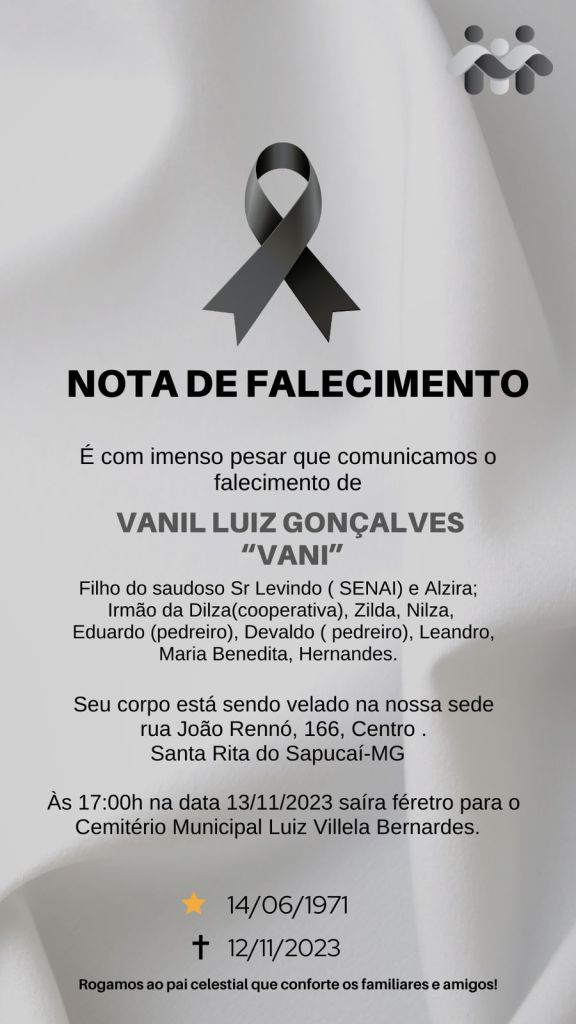 A imagem da nota é fornecida pela Funerária Santa Rita.