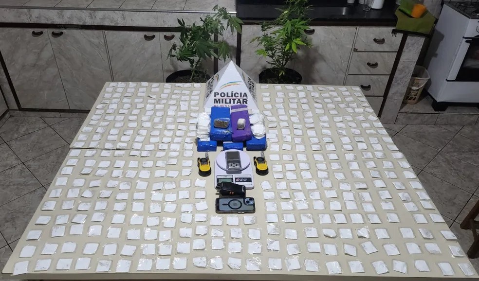 Ao todo foram apreendidos 530 papelotes de cocaína, 5 barras de maconha, outros dois pedaços da mesma drogas e ainda duas plantas de maconha.