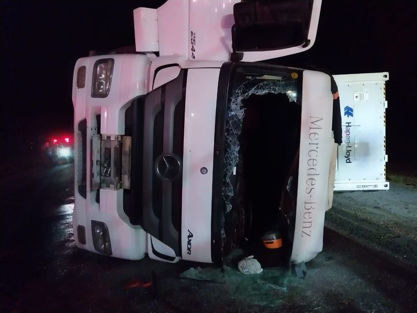 Carreta com carnes tomba em Piranguinho e motorista é preso por embriaguez
