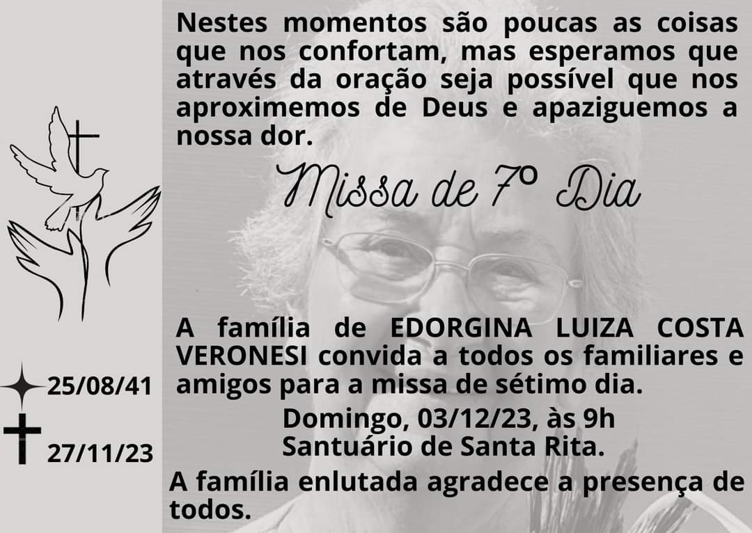 MISSA DE SÉTIMO DIA – Edorgina Luiza Costa Veronesi