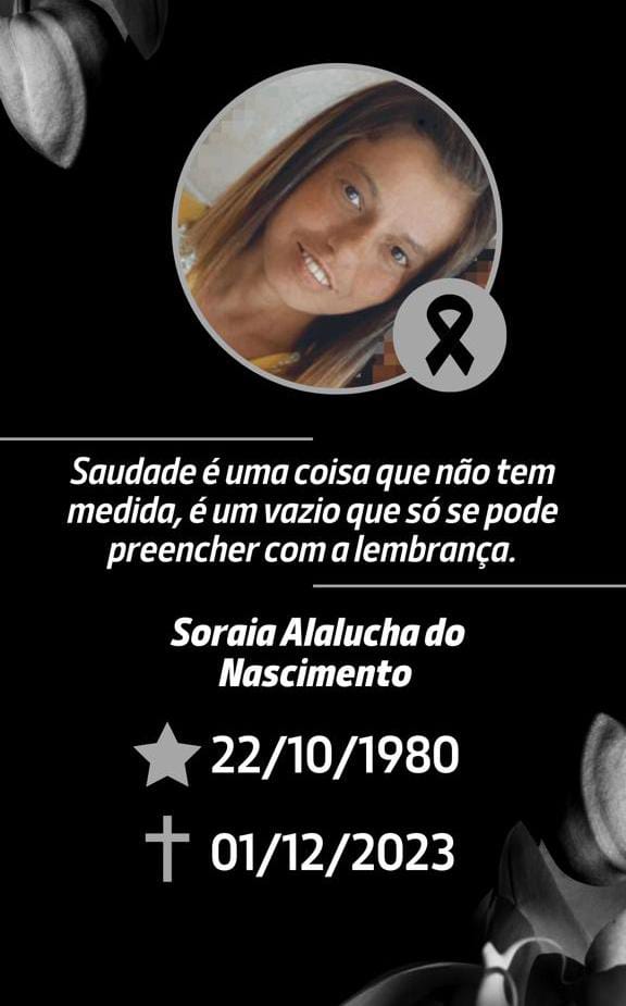 Foi com pesar que recebemos a notícia do falecimento ocorrido em Guarulhos de Soraia Alalucha do Nascimento.