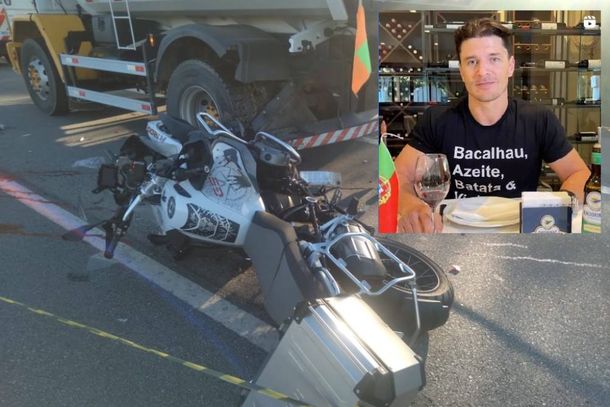 Acidente na Rodovia Fernão Dias em São Gonçalo do Sapucaí, no Sul de Minas, ao final da tarde desta quinta-feira (14), envolveu um caminhão, uma carreta e uma potente motocicleta de 1.200 cilindradas, tendo como vítima fatal o condutor da moto, identificado como sendo o empresário Leonardo Almeida Duarte, de 43 anos, proprietário do conhecido Restaurante do Porto, de Belo Horizonte, que tem duas unidades instaladas na capital mineira. Os motoristas do caminhão e carreta não tiveram ferimentos.