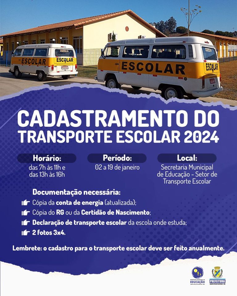 Atenção para o Cadastramento do Transporte Escolar 2024
