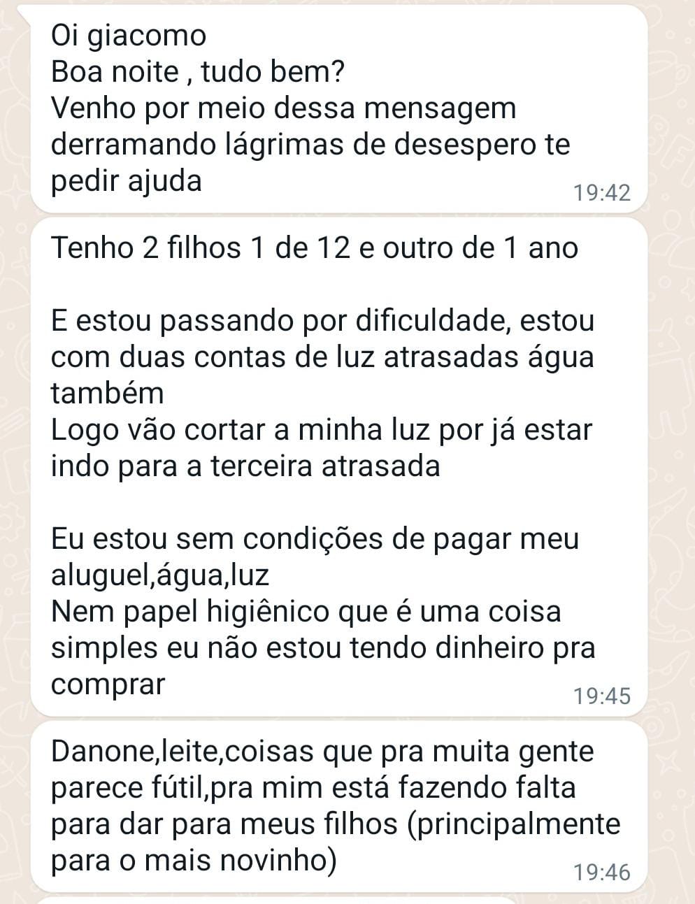 A Corrente do Bem recebeu este pedido de ajuda: