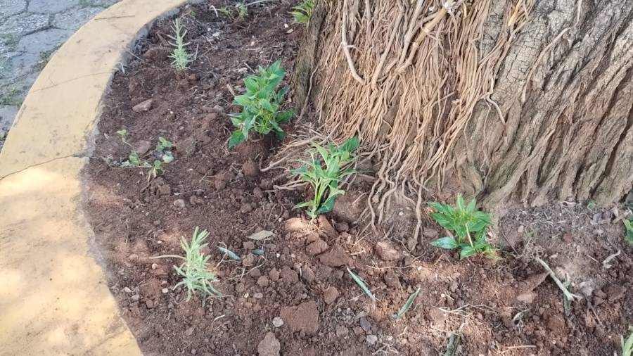Limpeza e jardinagem no canteiro em Santa Rita