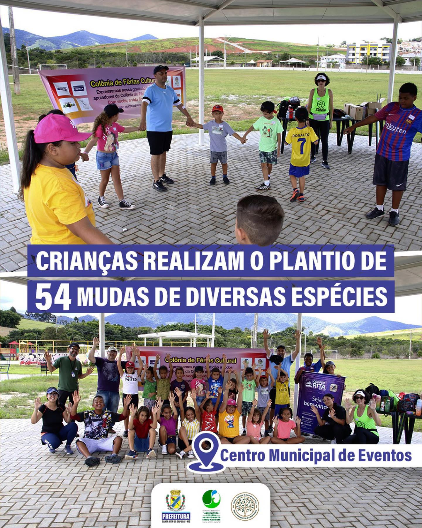 Crianças realizam o plantio de 54 mudas de diversas espécies no Centro Municipal de Eventos