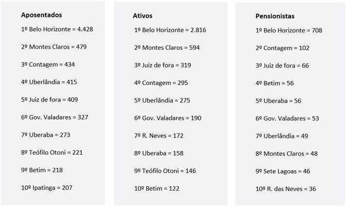 O Instituto de Previdência dos Servidores do Estado de Minas Gerais (Ipsemg) realizou o levantamento das dez cidades com o maior número de beneficiários que ainda não realizaram o Censo Cadastral Previdenciário de Regime Próprio de Previdência (RPPS).