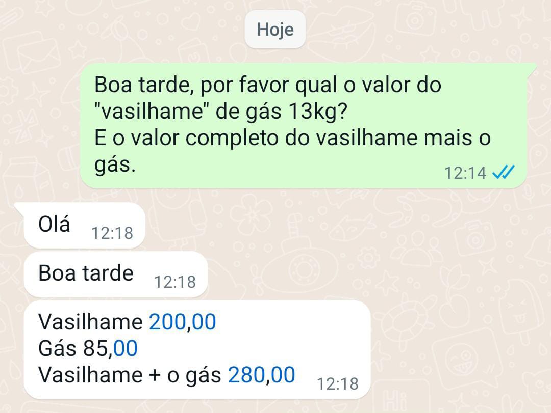 O valor do vasilhame é de $ 200,00 com o gás $ 280,00 se nós conseguirmos 28 pessoas doando 10 reais vamos conseguir entregar a ela o gás completo, o dinheiro que ela tem poderá comprar alimentos pras crianças.