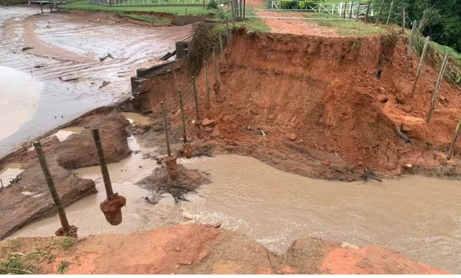 Represa rompe e leva trecho de estrada na zona rural de Cachoeira de Minas