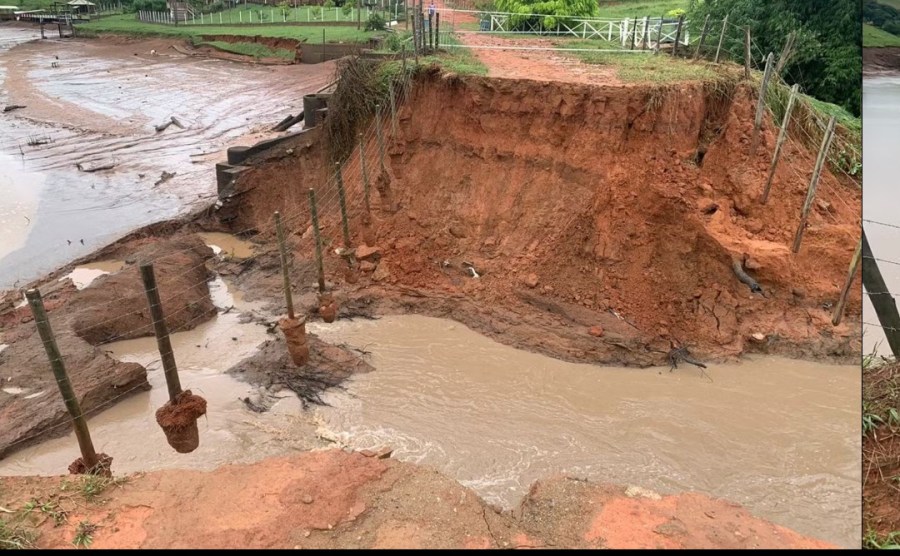Represa rompe e leva trecho de estrada na zona rural de Cachoeira de Minas